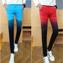 男春秋个性彩虹渐变帅气时尚弹性紧身裤青年发型师夜店修身休闲裤