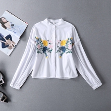 林珊珊春装韩范宽松花朵刺绣灯笼袖白衬衫女长袖百搭学生打底衬衣