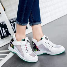 2017春夏季侧拉链高帮鞋网纱内增高女单鞋透气休闲运动女鞋韩版潮