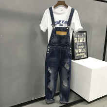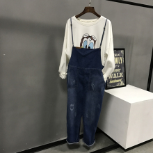 2017春装新款韩国水洗牛仔背带裤宽松显瘦哈伦裤连体九分裤女裤子
