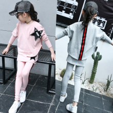 童装女童2017春装新款儿童休闲长袖套装中大童蝙蝠衫+裙裤两件套
