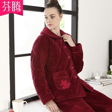 芬腾睡衣女珊瑚绒夹棉加厚套装2016冬季家居服新款女士纯棉套装