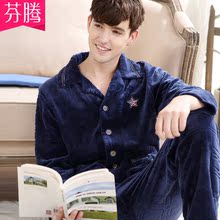 芬腾男士珊瑚绒睡衣2016新款春秋季长袖加厚法兰绒家居服套装