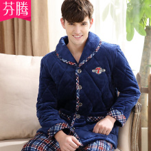 芬腾三层夹棉睡衣男士冬季天法兰绒女子珊瑚绒加厚保暖情侣家居服