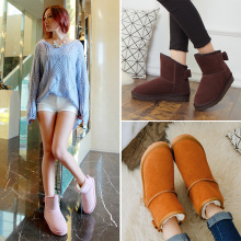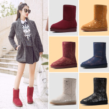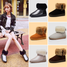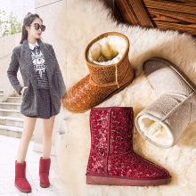 2016秋冬新款雪地靴女真皮中筒女靴子加厚保暖防滑雪地棉鞋