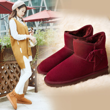 百巨多2016新款蝴蝶结中筒牛皮雪地靴女防滑耐磨正品女鞋子包邮
