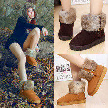 百巨多 2016冬季新款短筒雪地靴女鞋 超大兔毛皮防滑耐磨真皮短靴