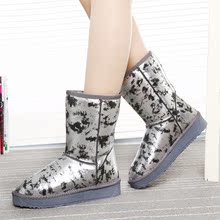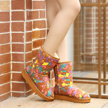 百巨多2016新款涂鸦牛皮中筒雪地靴女冬季防滑耐磨雪地棉包邮