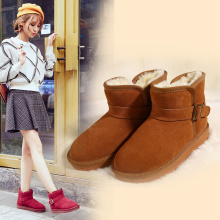 2016短筒雪地靴女冬季棉靴平底加绒保暖短靴女搭扣学生女棉鞋靴子