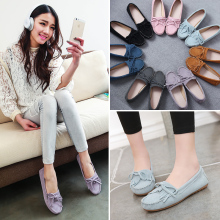 百巨多春夏新款牛皮豆豆鞋女平底单鞋甜美蝴蝶结舒适浅口驾车鞋