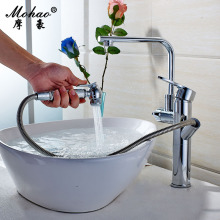 全铜抽拉式面盆冷热水龙头单把单孔拉伸洗脸盆台盆洗头伸缩带喷头