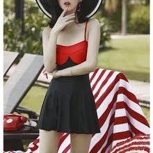 Love-同款bikini温泉泳衣小胸钢托聚拢连体裙式保守显瘦游泳衣女