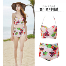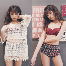 金晨花样姐姐同款韩国复古高腰温泉比基尼三件套小胸性感沙滩泳衣