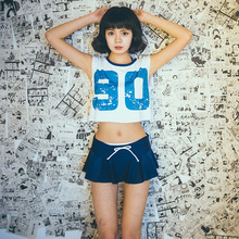 学生泳衣女保守可爱韩国平角分体小胸聚拢显瘦遮肚运动泳装泡温泉