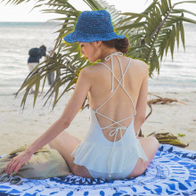 2016代购新款BIKINI小清新蝴蝶结挂脖显瘦连体温泉女泳衣比基尼