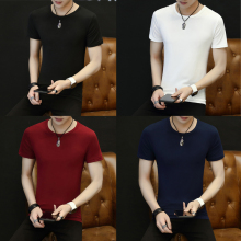 2件装夏季男士短袖T恤圆领纯色体恤打底衫韩版条纹半袖修身男装潮