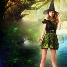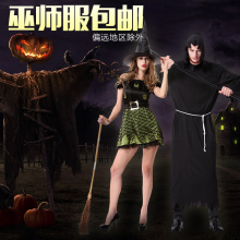 万圣节巫婆巫师服装成人Cosplay化妆舞会演出服女扫帚恶魔套装男