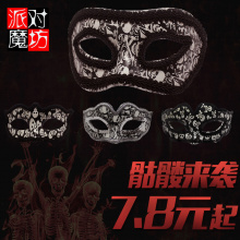 舞会面具男士鬼节骷髅图案面罩个性威尼斯半脸恐怖魔鬼魔王面具