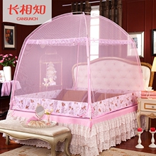 长相知家纺 蒙古包蚊帐1.5m1.8m床三开门圆顶学生加高拉链有底