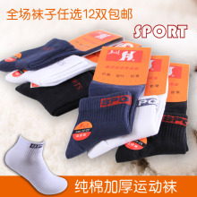 12双包邮 华山泉男袜纯棉加厚运动袜中筒/短筒防臭运动休闲男人袜