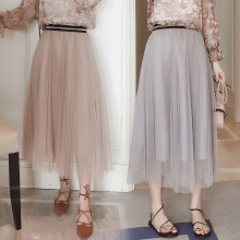 2017春夏新款女装韩版气质淑女百褶网纱半身裙中长裙 0406