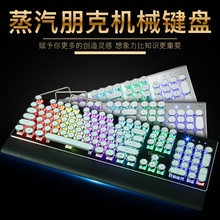 真机械键盘青轴104键跑马灯七彩金属游戏有线蒸汽朋克复古圆帽