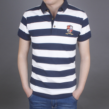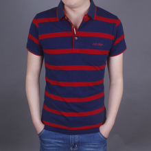 战地吉普jeep短袖T恤男纯棉潮条纹翻领体恤衫夏季衣服男短袖修身