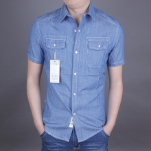 战地吉普jeep牛仔衬衣男短袖修身韩版潮流帅气衣服夏季衬衫男薄款