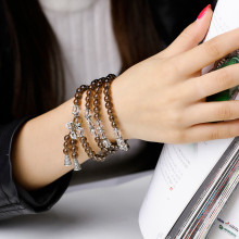 亿都 茶水晶+白水晶 108颗佛珠手链
