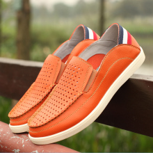 新款春夏季男士休闲皮鞋韩版镂空时尚潮鞋真皮洞洞鞋一脚蹬板鞋子