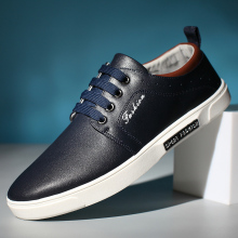 新款男鞋春秋季潮鞋男休闲皮鞋英伦青年系带软面皮板鞋