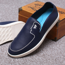 男鞋春季潮鞋休闲皮鞋韩版青年印花软面皮一脚蹬乐福鞋侧拉链板鞋