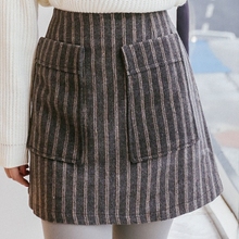 包邮秋冬新款显瘦条纹口袋毛呢半身裙A字裙高腰包臀裙短裙一步裙