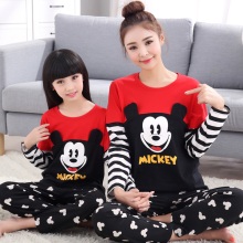 春秋季纯棉女孩睡衣长袖亲子母女装家居服女童可爱韩版中大童套装