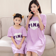 夏季韩版母女装纯棉短袖睡裙儿童中大童女童睡衣亲子全棉家居服