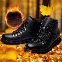 法西图 男士马丁靴冬季加绒保暖短靴真皮男靴系带军靴子