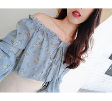 包邮。【ANLI STYLE】清新小碎花 甜美百搭 宽领口绑带混雪纺衬衫