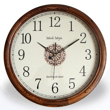 美时每家实木静音挂钟美式欧式简约复古石英钟大厅客厅
