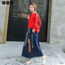2017夏季新款刺绣棉麻上衣半身裙套装时尚休闲大码宽松两件套潮