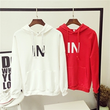 2017春装新款韩版百搭连帽抽绳印花字母长袖套头口袋宽松卫衣女潮