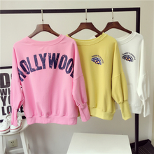 2017春装新款韩版前后印花字母大圆领长袖宽松显瘦套头卫衣上衣女