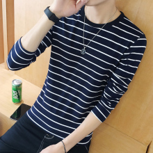 冬季男装打底衫男士加肥加大码上衣青少年黑白条纹加绒t恤男长袖