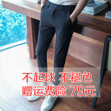 男士黑色休闲裤修身型西裤英伦小脚裤长裤子韩版弹力夏季九分裤潮