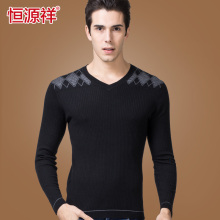 恒源祥毛衣男秋冬V领套头修身打底衫中青年针织衫内搭毛衫韩版潮