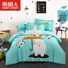南极人家纺全棉卡通四件套纯棉被套1.5m1.8米双人床上用品床单夏