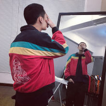 「M-2」牙买加拼色 原创蝙蝠袖情侣宽松刺绣夹克衫落肩扩版外套潮