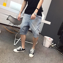 「不怕扯着蛋」美式休闲男士立体剪裁宽松牛仔裤日系拼接五分中裤