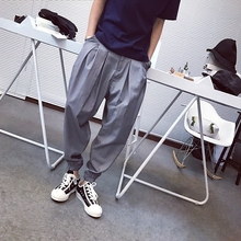 原创男裤日系青少年弹力小脚裤哈伦裤欧美街头宽松牛仔裤潮男长裤