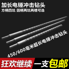 加长电锤钻头冲击钻头水泥穿墙圆柄两坑两槽方柄四坑450/600mm