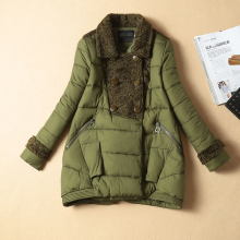 2016冬季新款女装拼接修身中长款棉衣女棉服